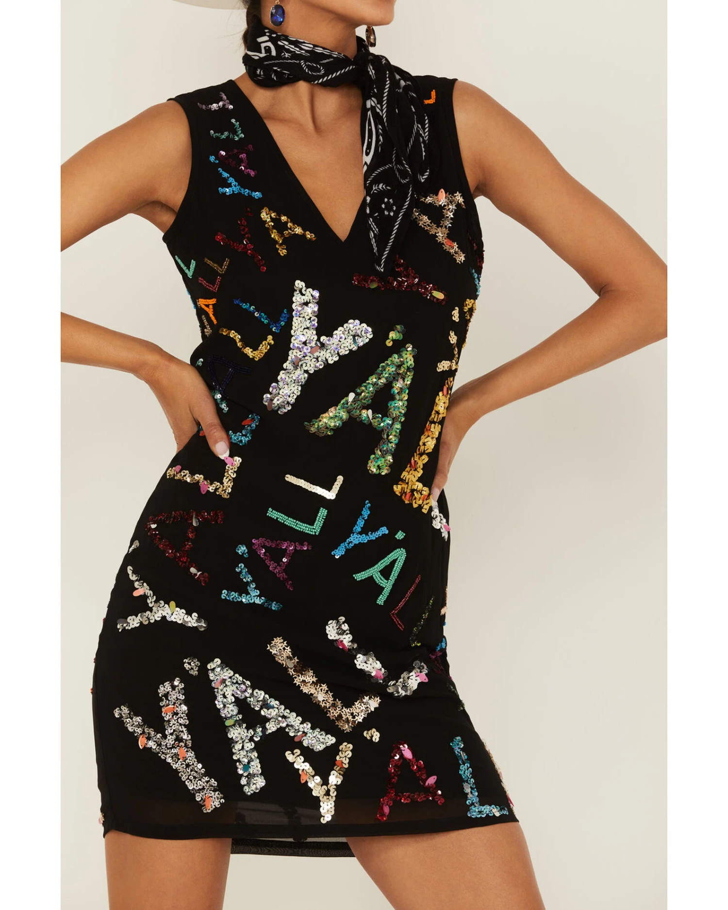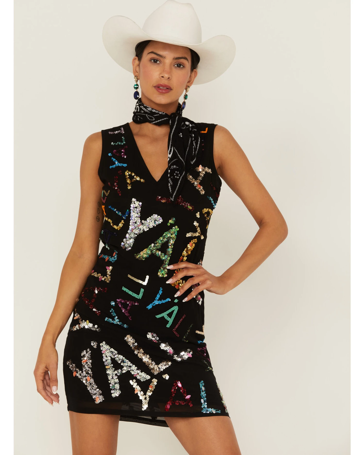 - Allover multicolored sequined “Y’all” details