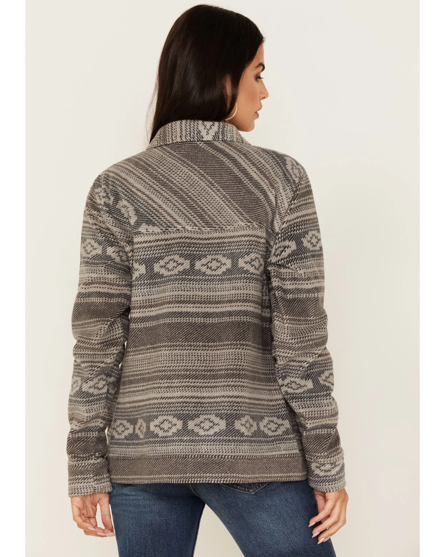 Cruel Girl Women’s Striped Geo Print Fleece Trucker Shacket