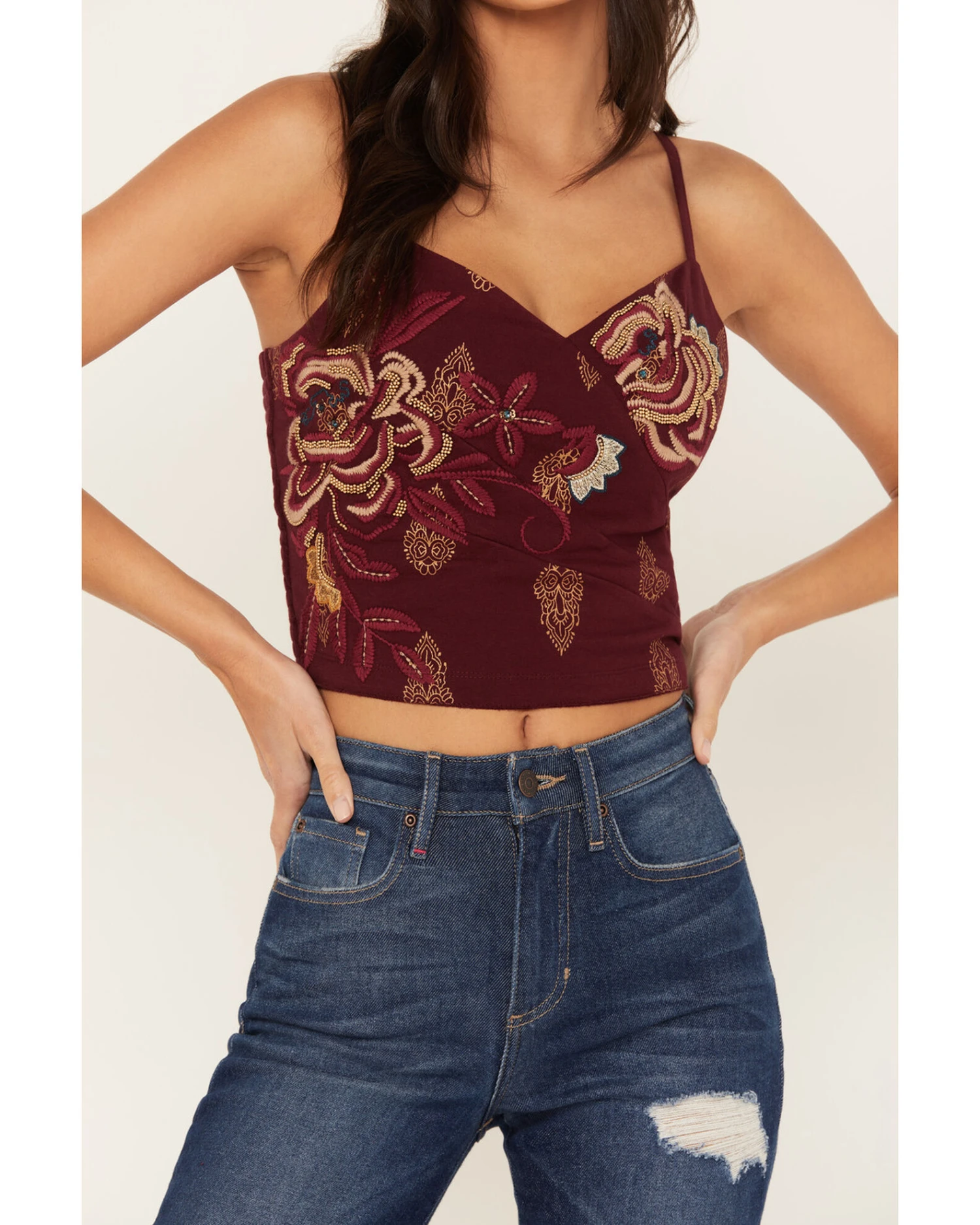 Idyllwind Women’s Jessamine Embroidered Smocked Back Crop Top
