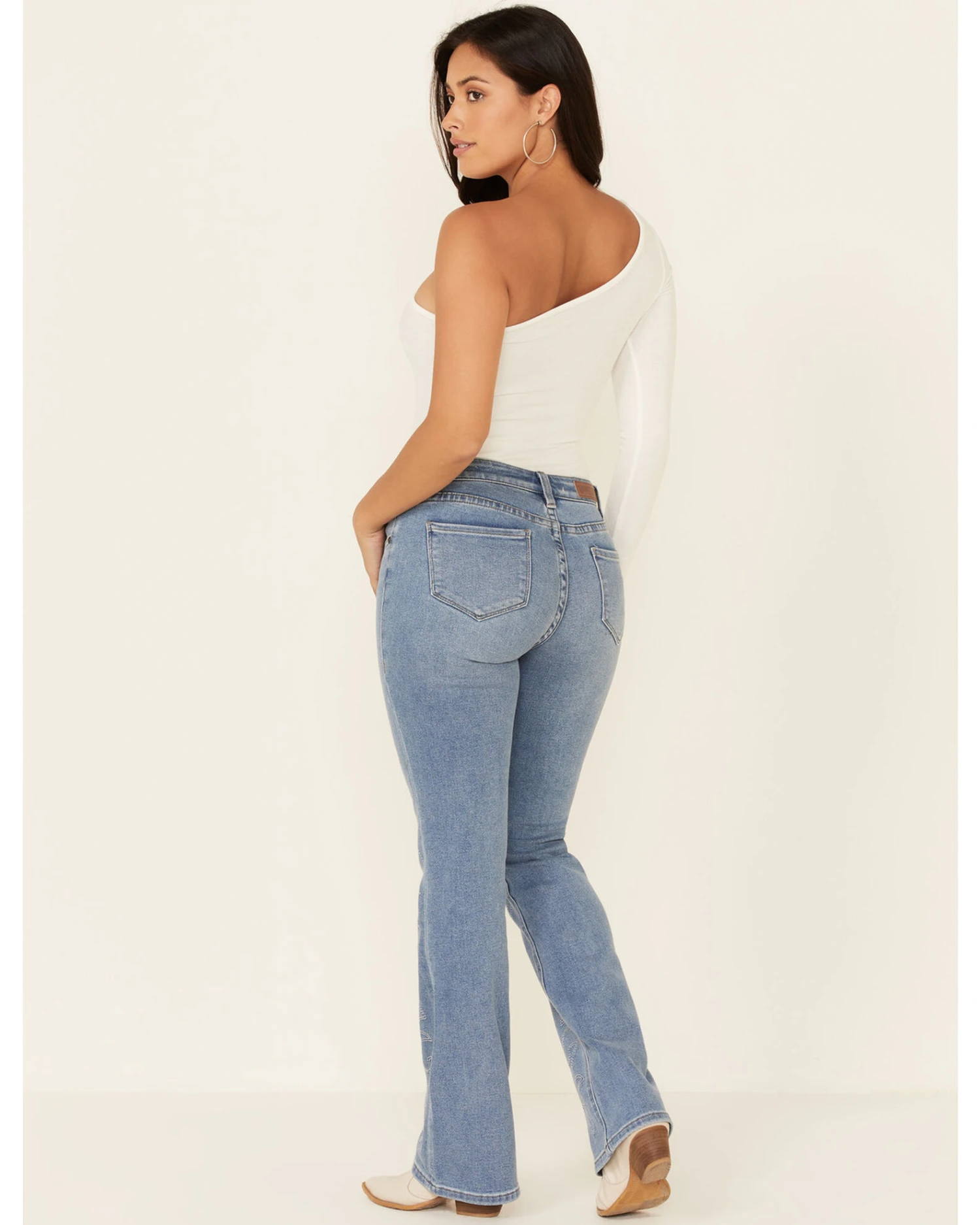 Rock & Roll Denim Women’s Medium Wash Embroidered Mid Rise Bootcut Jean