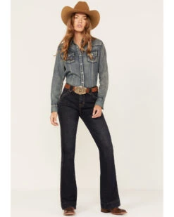 Rock & Roll Denim Women’s Rust Serape Stripe Southwestern Embroidered Long Sleeve Western Shirt