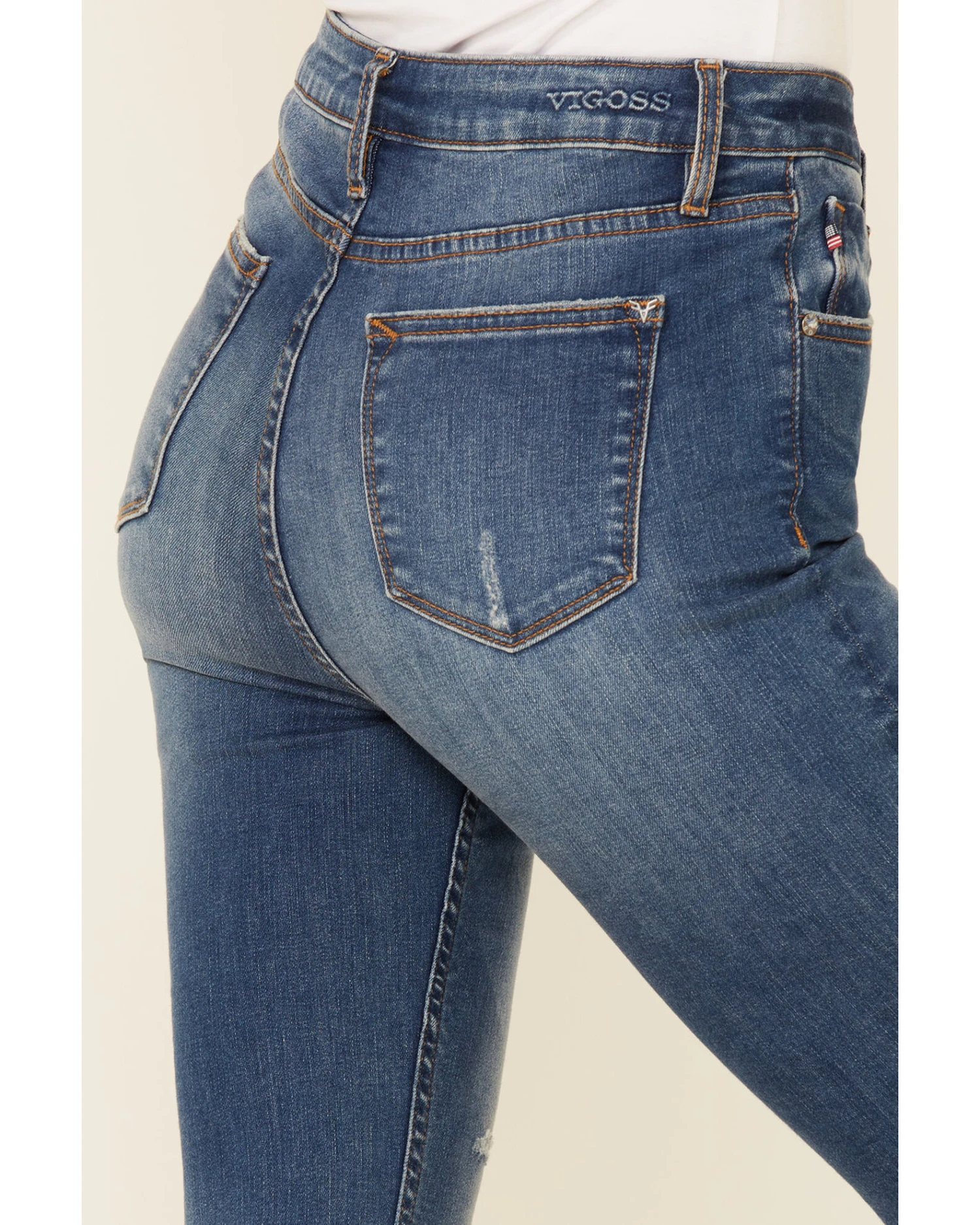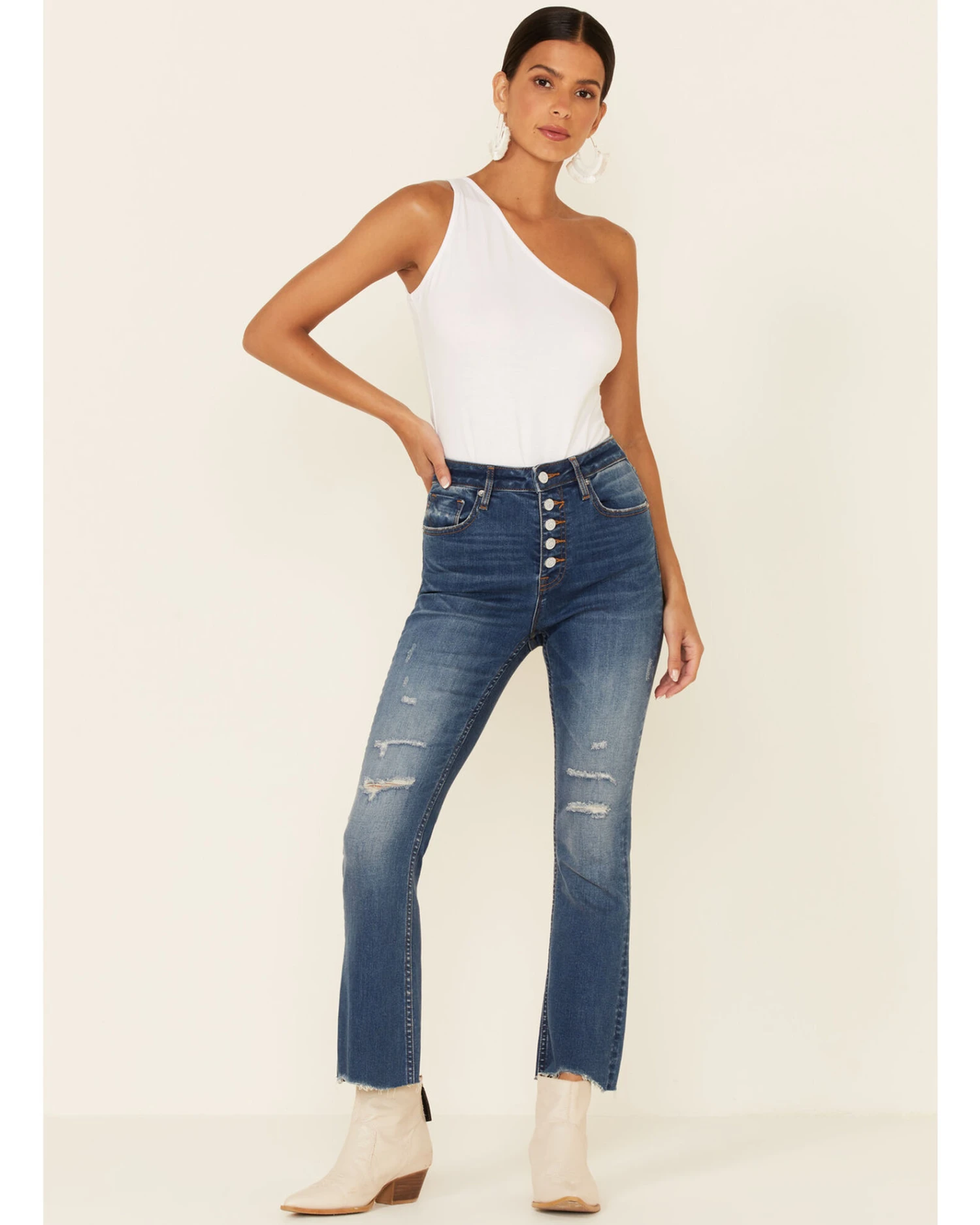 VIGOSS Women’s High Rise Button Front Gwen Cropped Flare Jeans