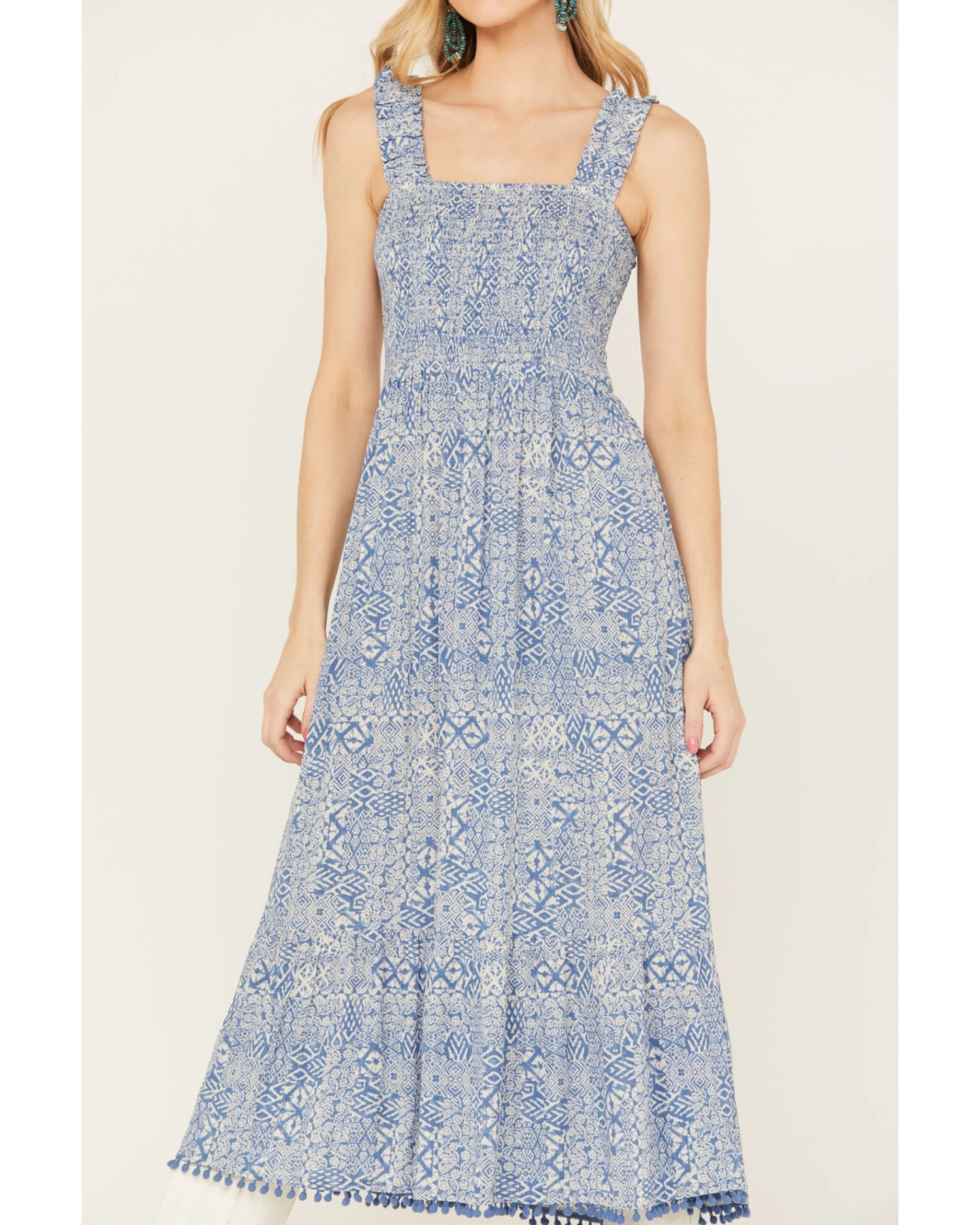 - Balled fringe on hem